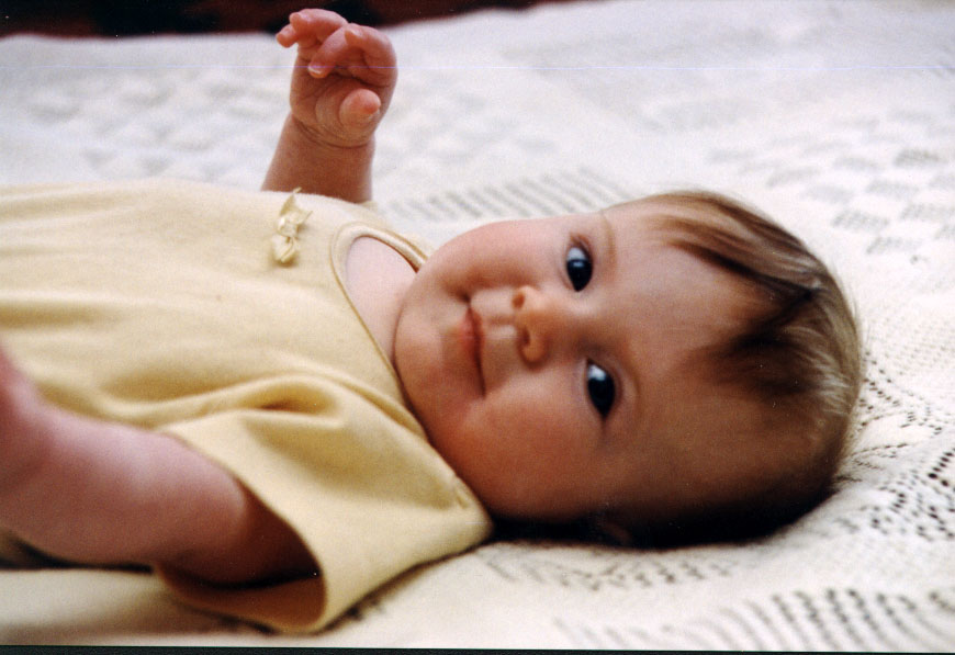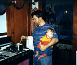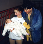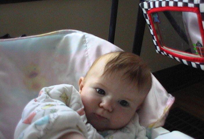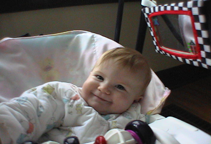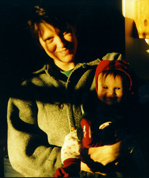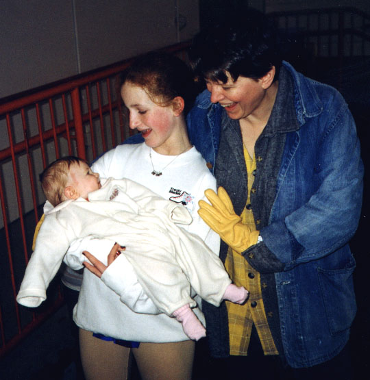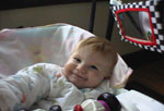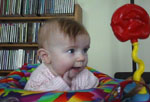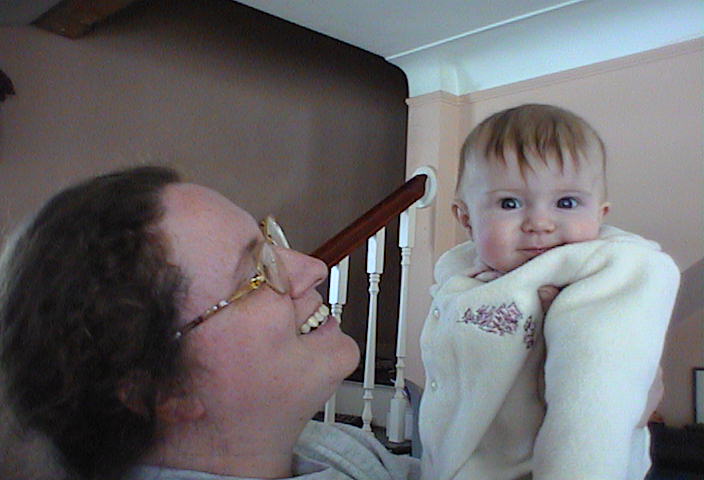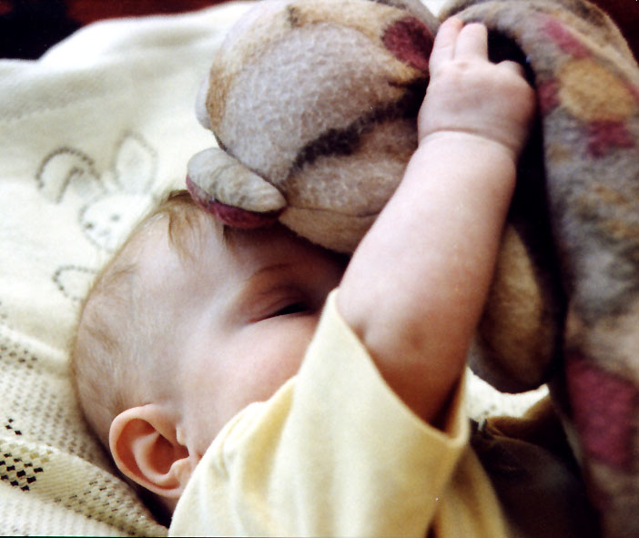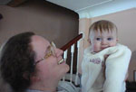 Fun with Lovie Bear, a handmade gift from TG's friend Kelli.